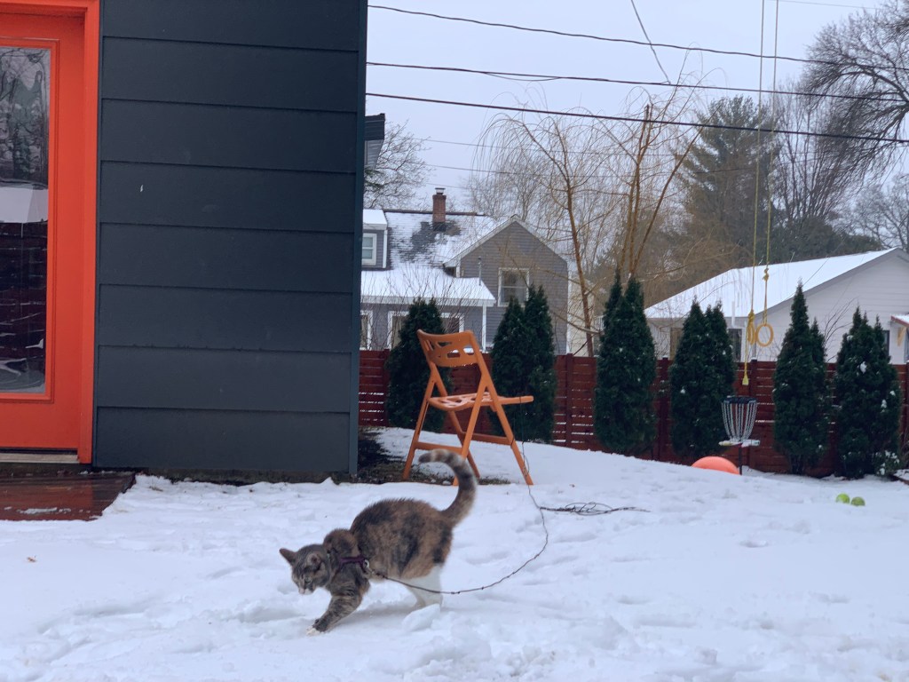 First measurable snow of the year and kitty is pumped.